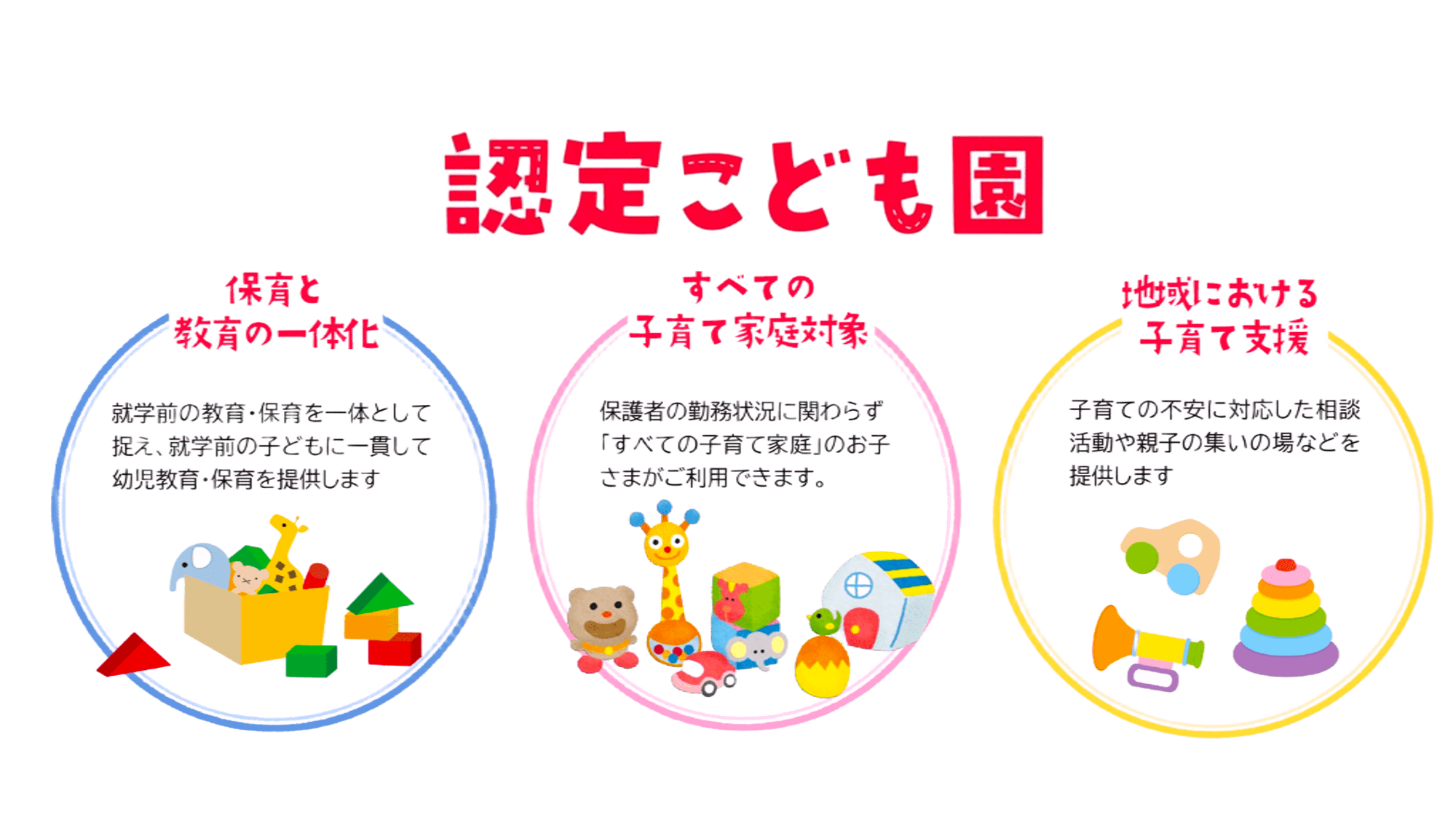 これまでは『保育に欠ける子ども(保護者の就労、妊娠、出産、疾病、障がいなど)』の要件を満たさない場合、預かることが出来ませんでした。認定こども園では、『保護者が就労していない(母親が専業主婦である場合など)保育に必要な事由に該当しない場合で、子どもの年齢が満3歳~5歳の場合』、教育標準時間(1号認定)で通園することができます。また1号認定はご家庭と保育園の直接契約になりますので、申し込みと入所決定は保育園でおこないます。