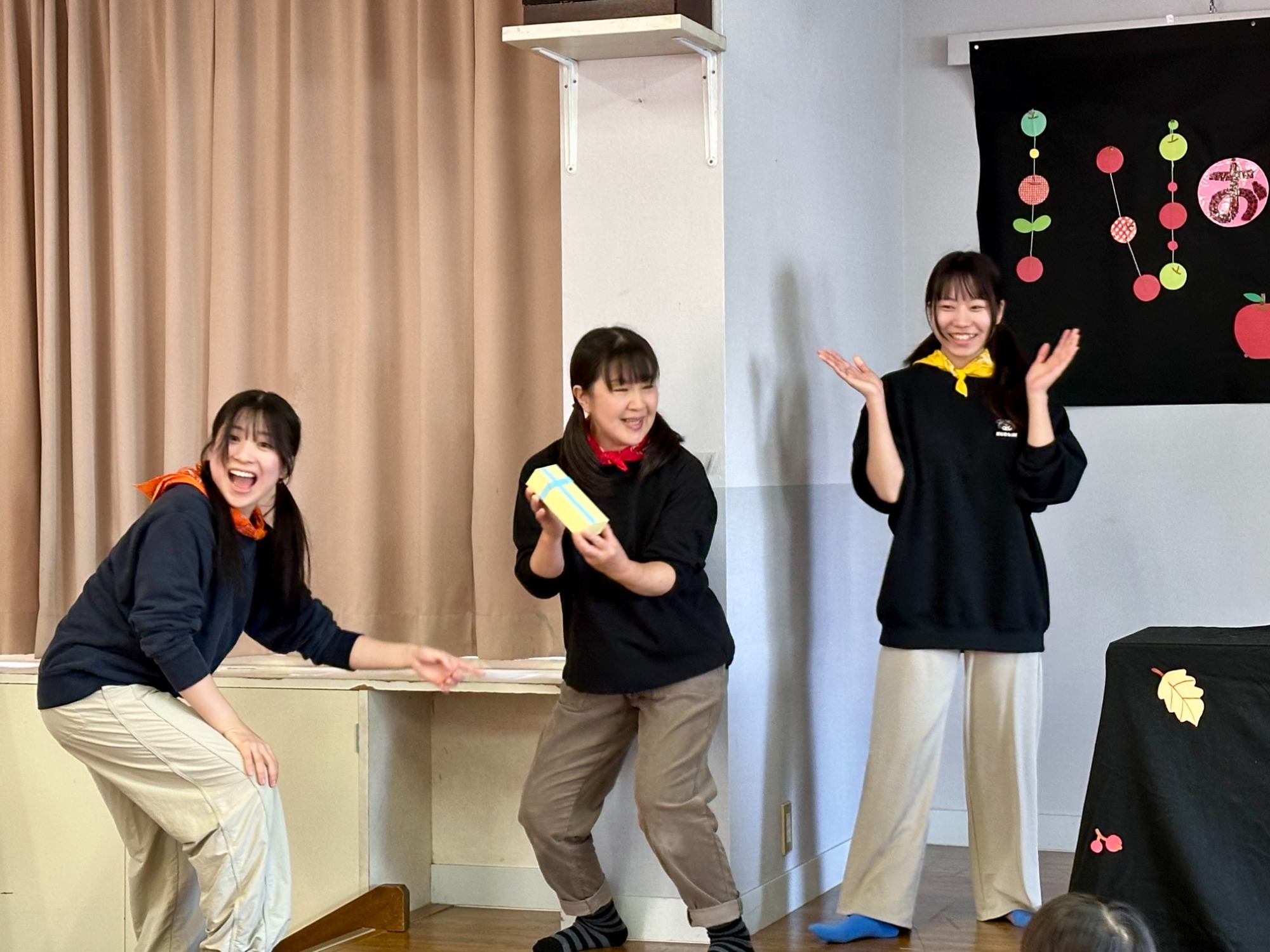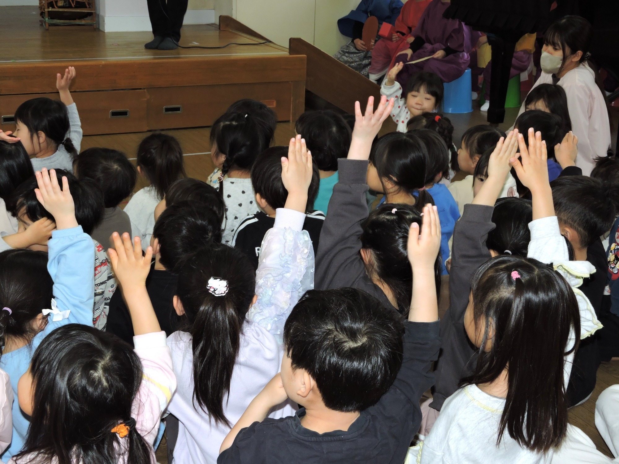 劇団員さん達の公演に子どもたちも笑いあり、拍手ありで見入っていましたよ♪最後には団員さん達に「ありがとう!」の気持ちを込めてハイタッチでさよならしたよ。来年はどんな劇が見れるかな?今から楽しみだね。