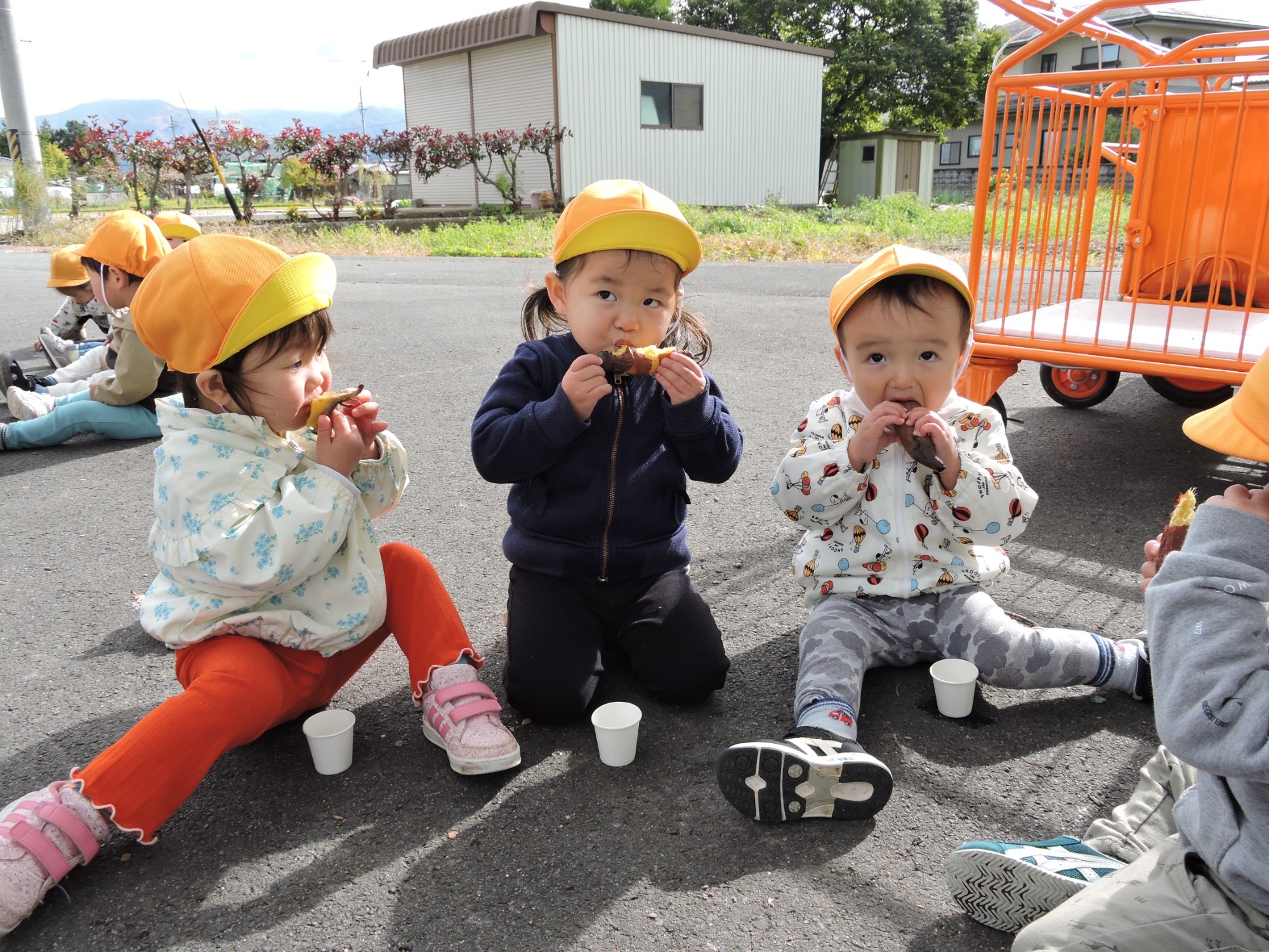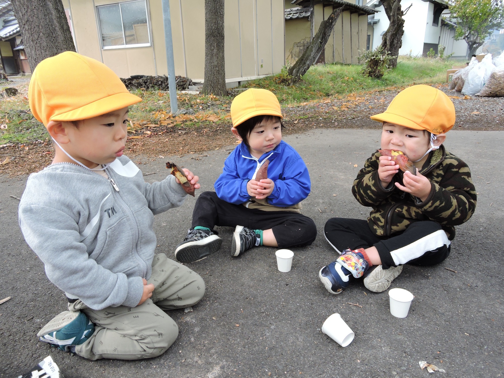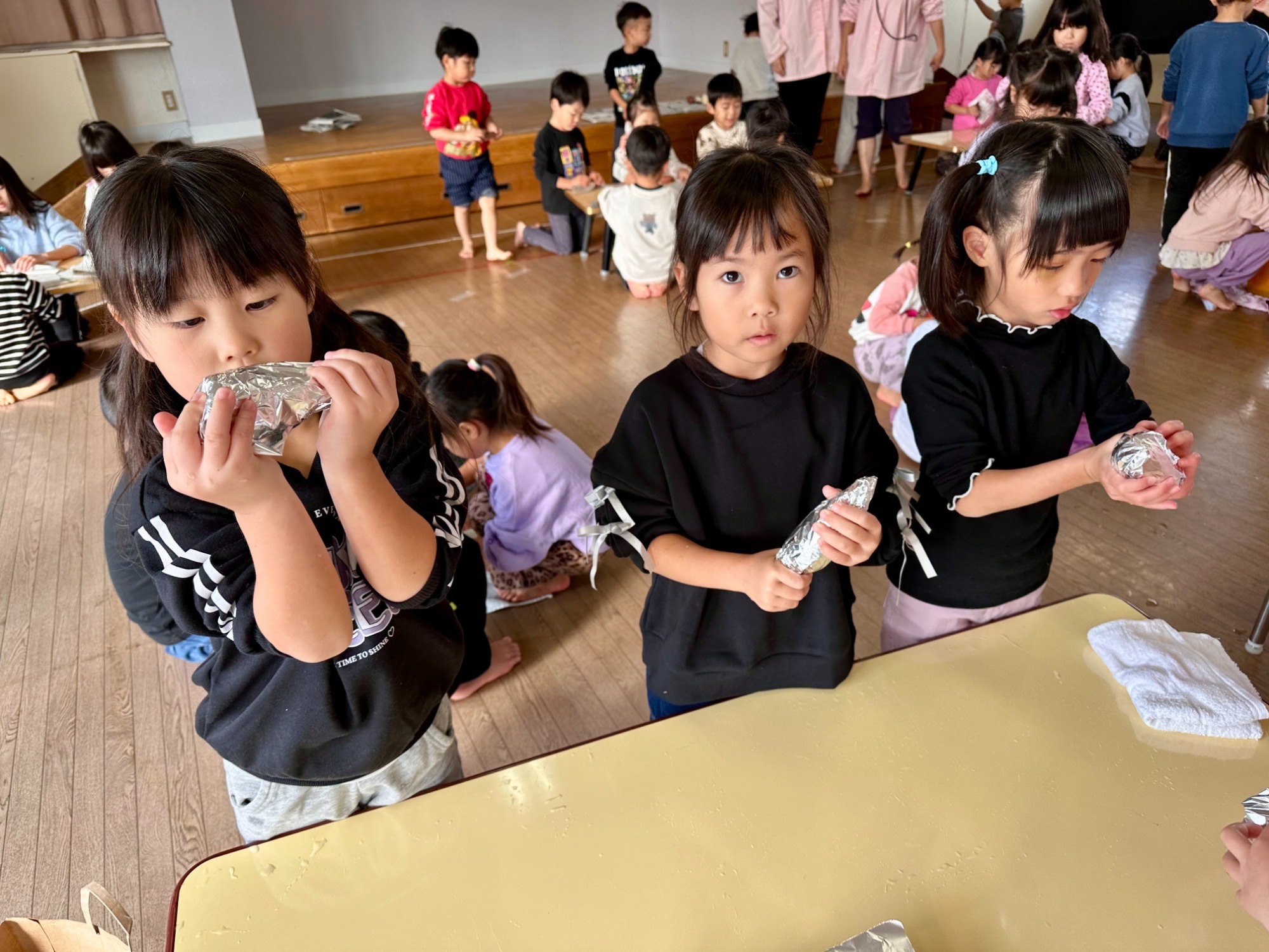 当日は年長児が3つの山に分かれておいしく焼けるお手伝いをしてくれました~焼けたお芋はその場で小さい子から順にいただきましたよ♪やわらかくて甘~いおいも🍠おいしかったね!ほくほくトロトロの秋をみんなでいただきました、ありがとう✨