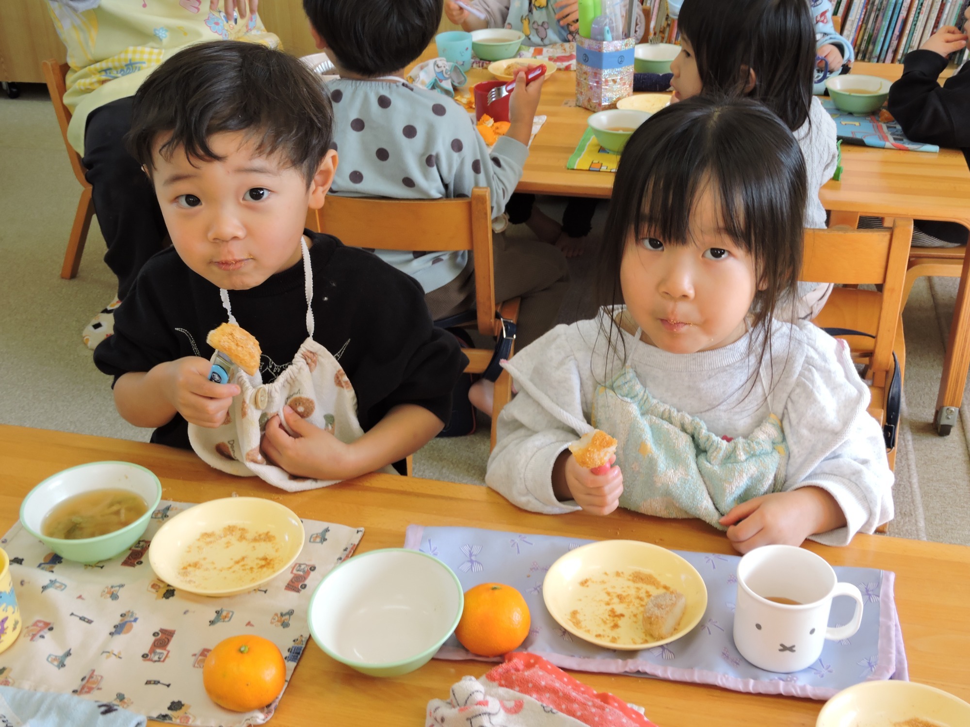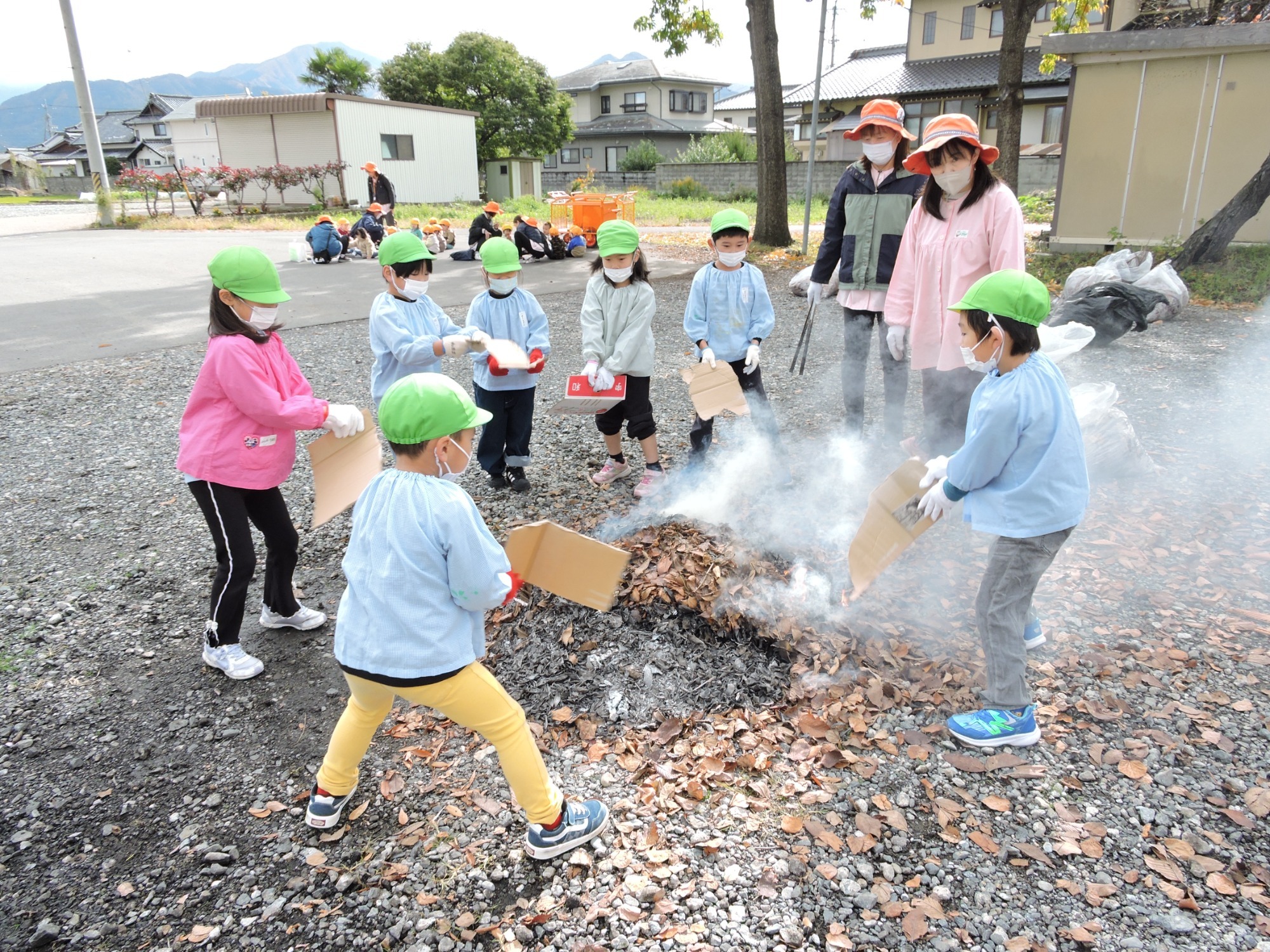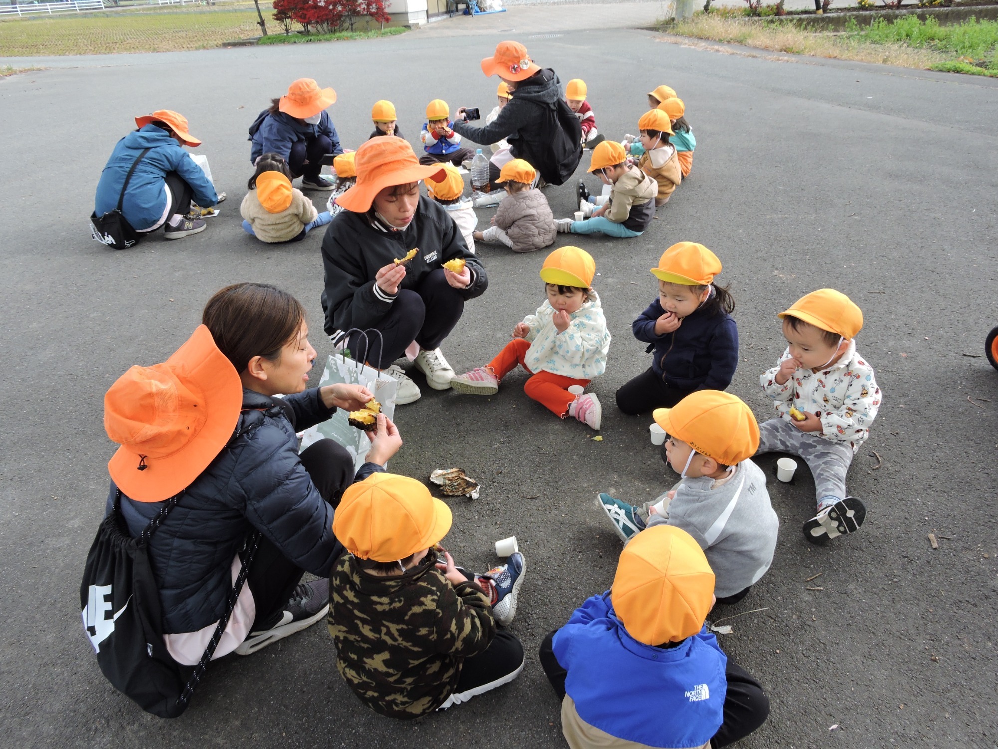 当日は年長児が3つの山に分かれておいしく焼けるお手伝いをしてくれました~焼けたお芋はその場で小さい子から順にいただきましたよ♪やわらかくて甘~いおいも🍠おいしかったね!ほくほくトロトロの秋をみんなでいただきました、ありがとう✨