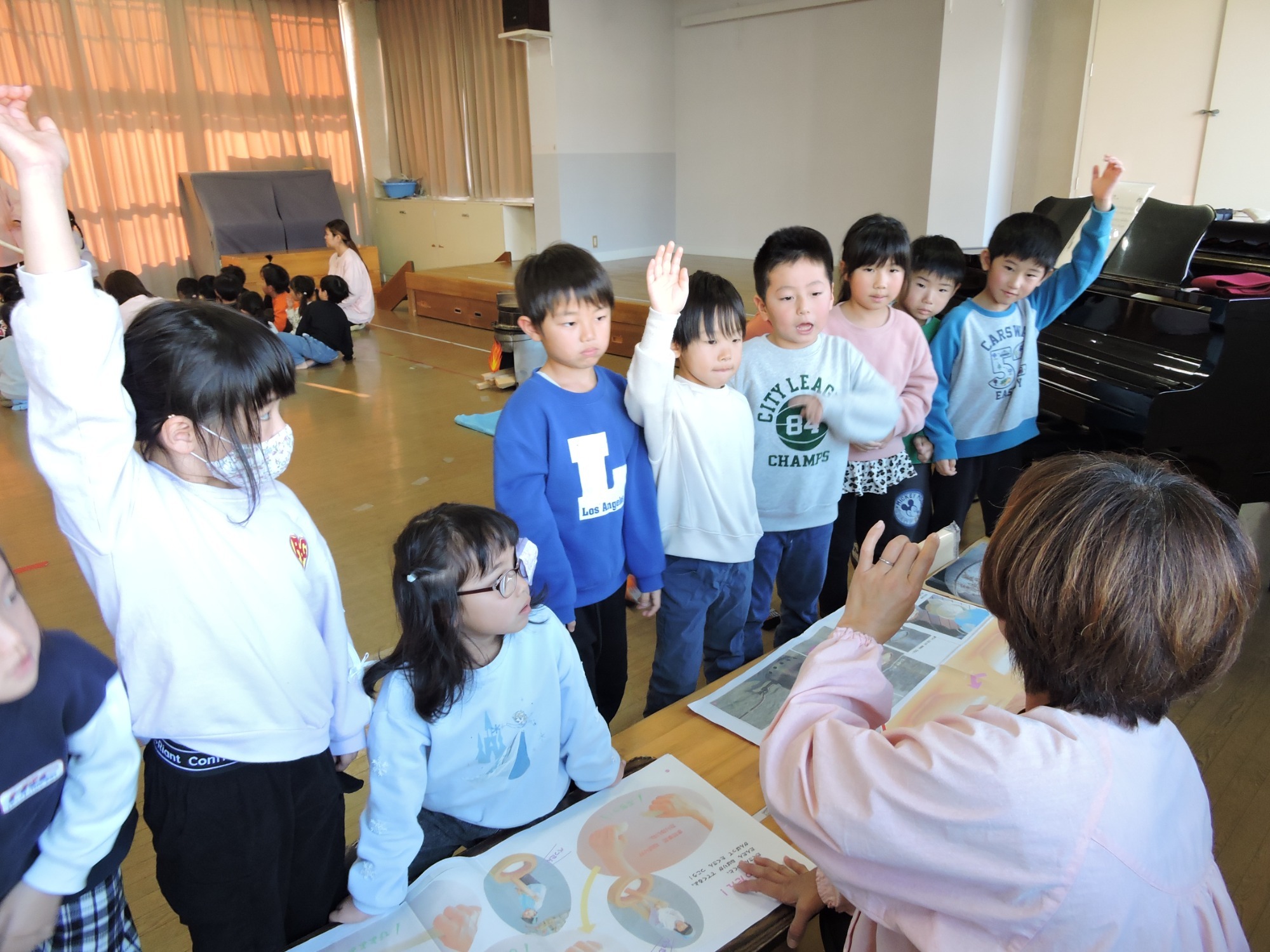先生の言葉がけに笑いが見られたり、ピシッと気持ちを引き締めたり子どもたちの色々な姿が見られましたよ♪