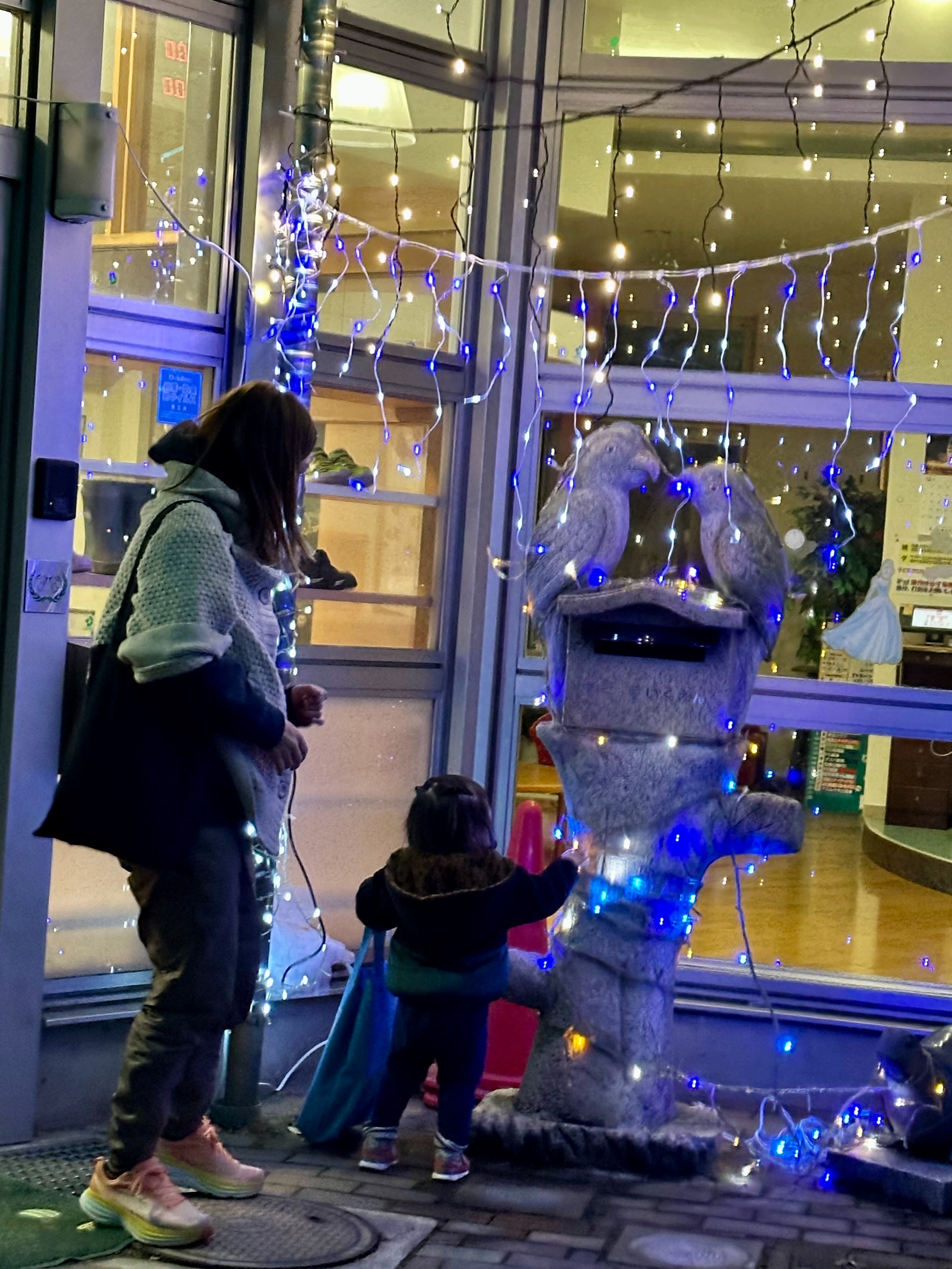 園内はクリスマスツリーが登場しクリスマスムードが高まっています。保育園もイルミネーションがライトアップされ、帰宅時に親子で楽しんでいる姿が見られます。早くサンタさんが来てくれるといいね~🎄今からクリスマスが待ち遠しいですね。