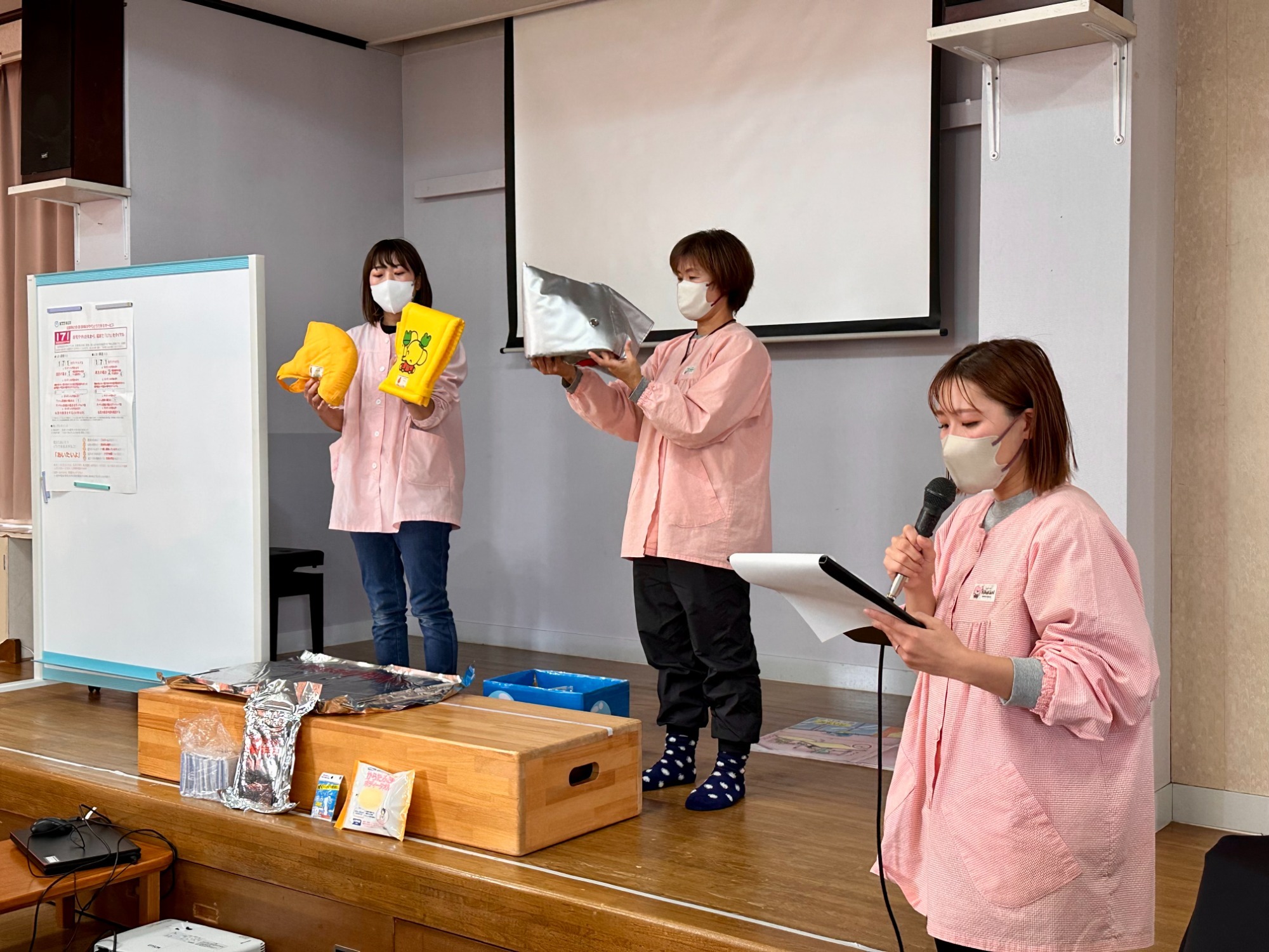 参観日と10月に行われた引渡し訓練の振り返りがありました。事前に参加いただいたアンケート結果をまとめ、当日の振り返りと大事な事を安全係から報告がありました。