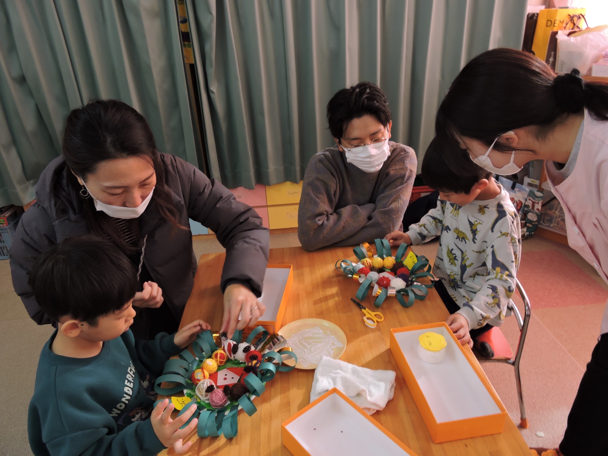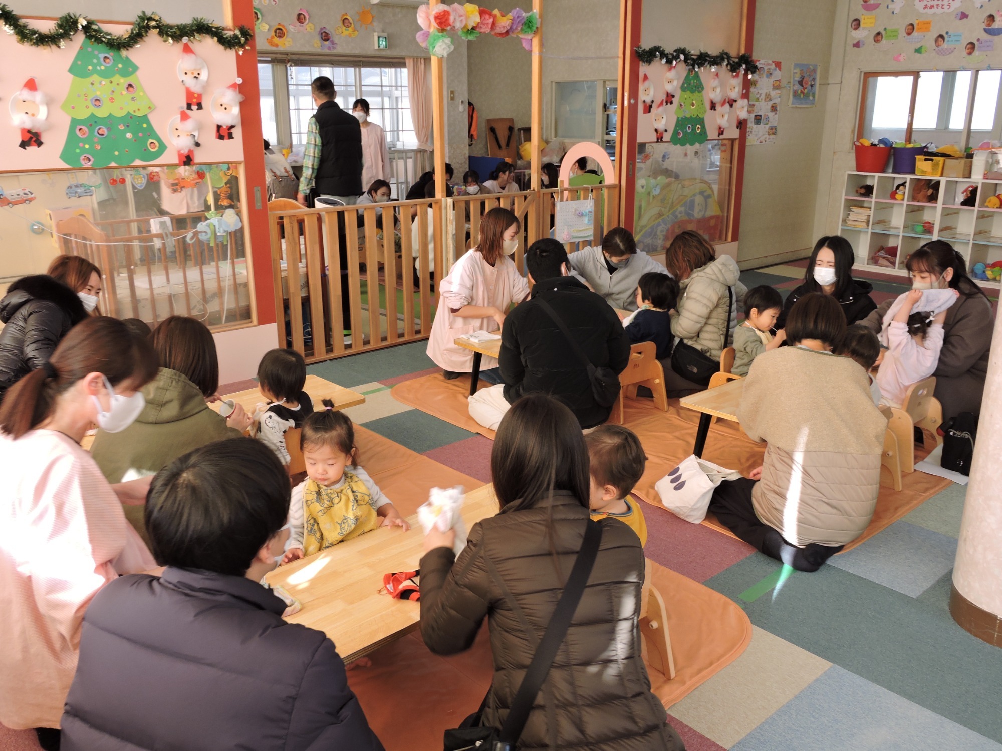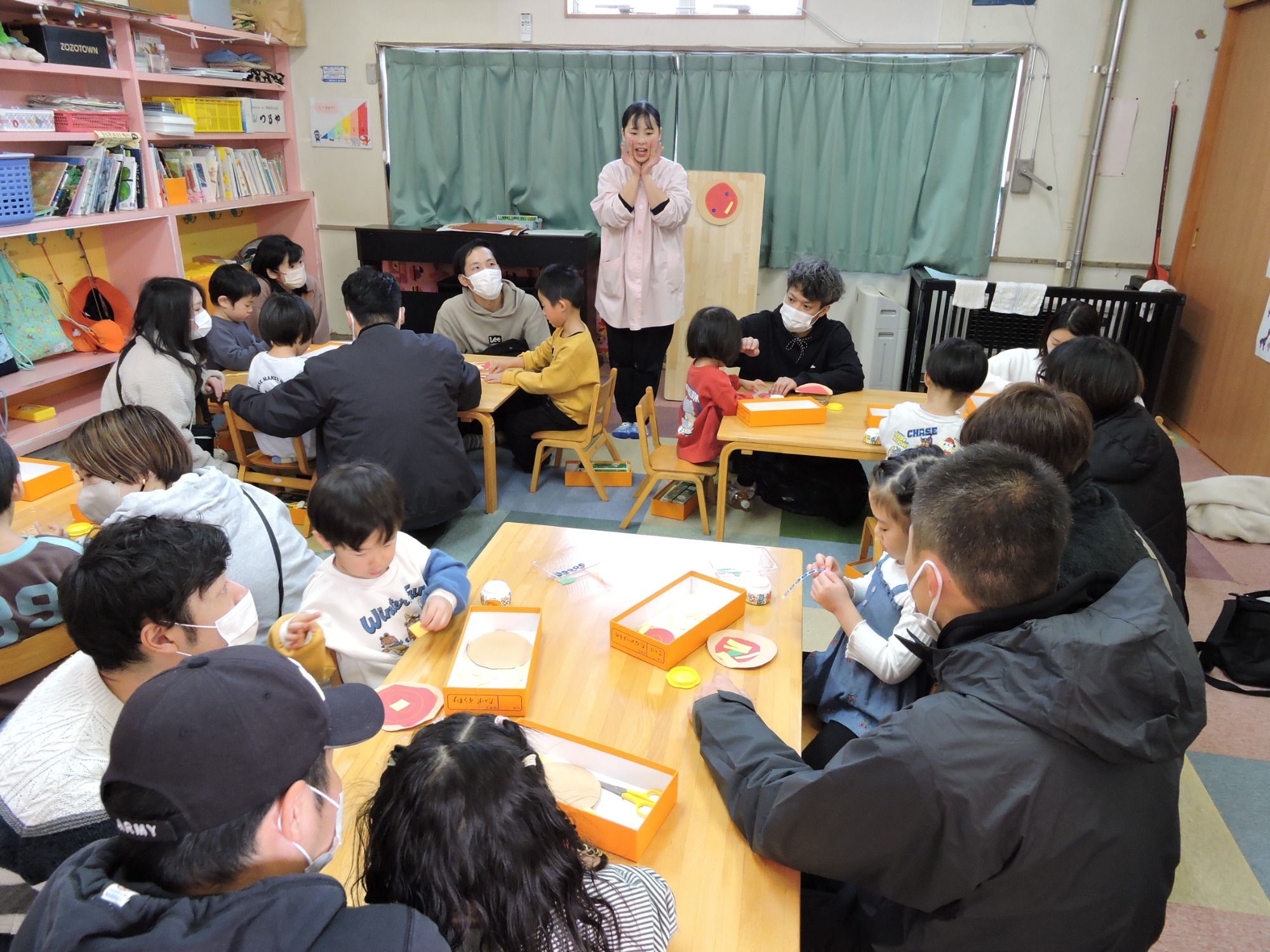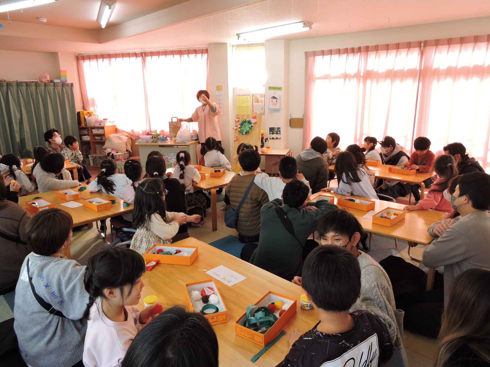 その後、参観では各クラスごと普段の生活の流れを見ていただいたり、親子でふれあい遊びや製作をおこないました。大勢の方にご参加いただきありがとうございました。来年の保護者役員さんも決まりました!ありがとうございます。