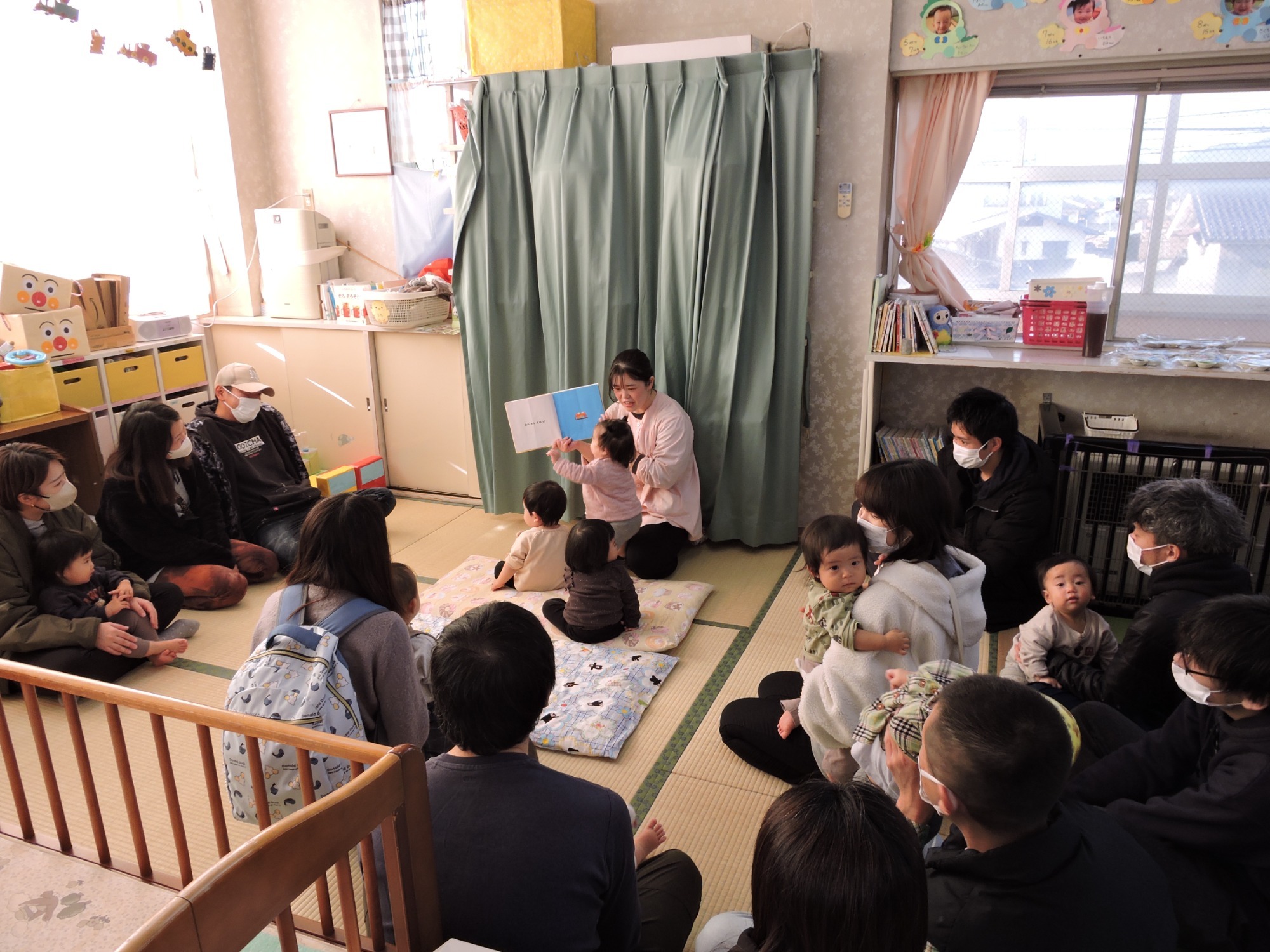 風間保育園では毎日すべてのクラスで絵本の読み聞かせをしています。子どもたちは絵本の世界に入り込み想像する力をどんどん広げていきます。