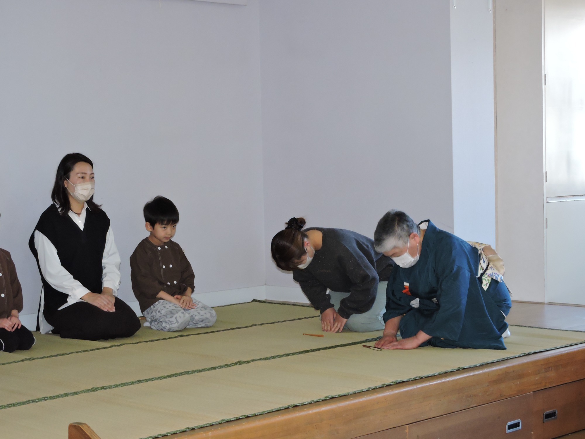 毎年春から少しずつ練習を始めて1年かけてお茶の先生に教わってきたお手前をお家の方にも一緒に体験していただく機会を設けています。