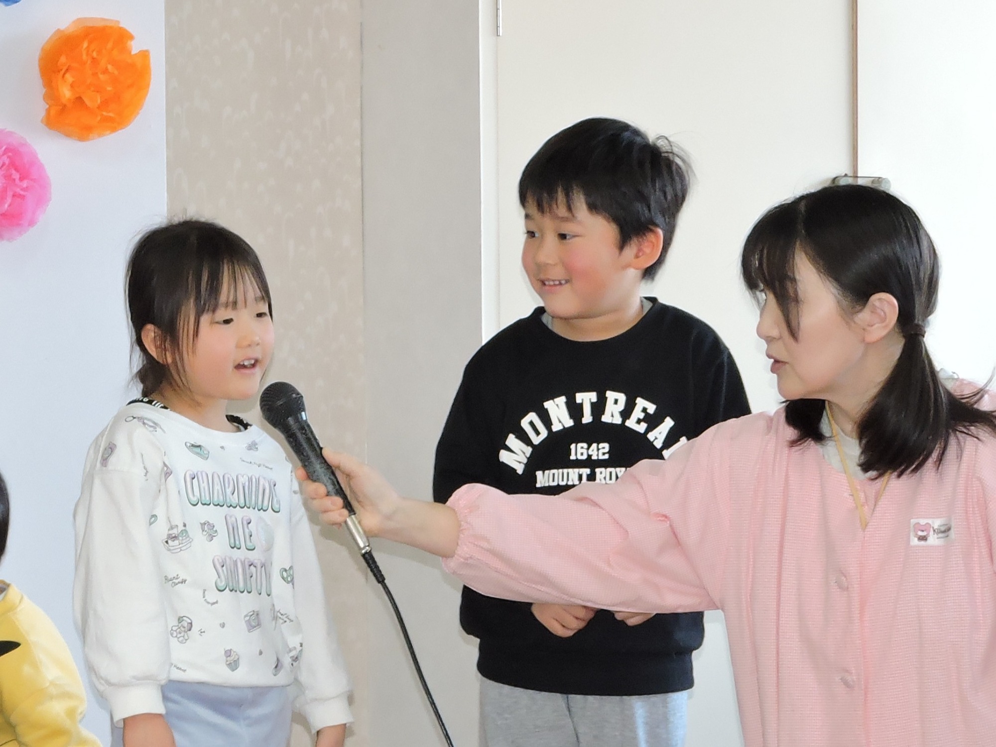 自分の名前と“好きな花”をインタビュー🎤で答えました。小さなお友だちもとっても上手に言えました👏
