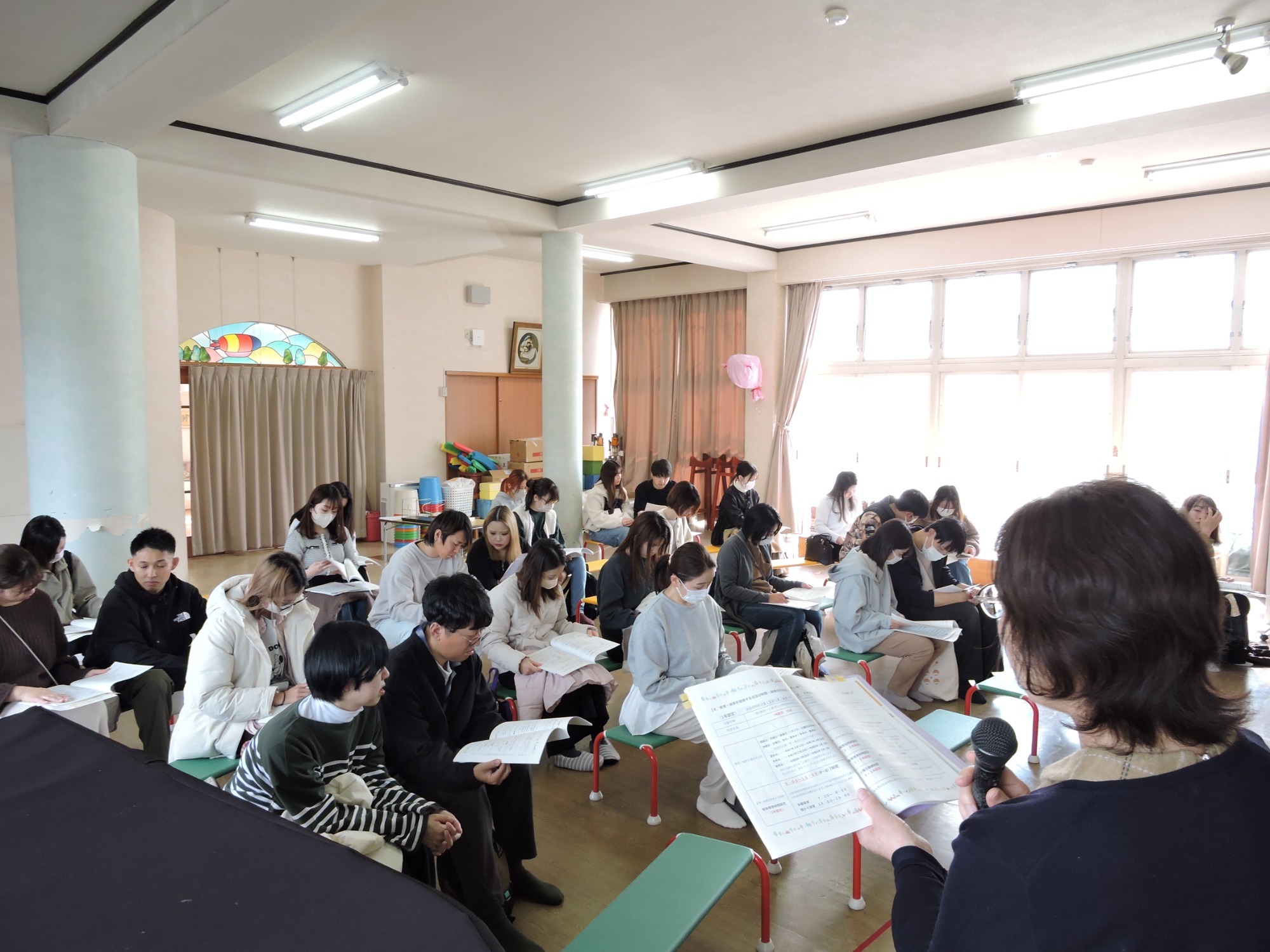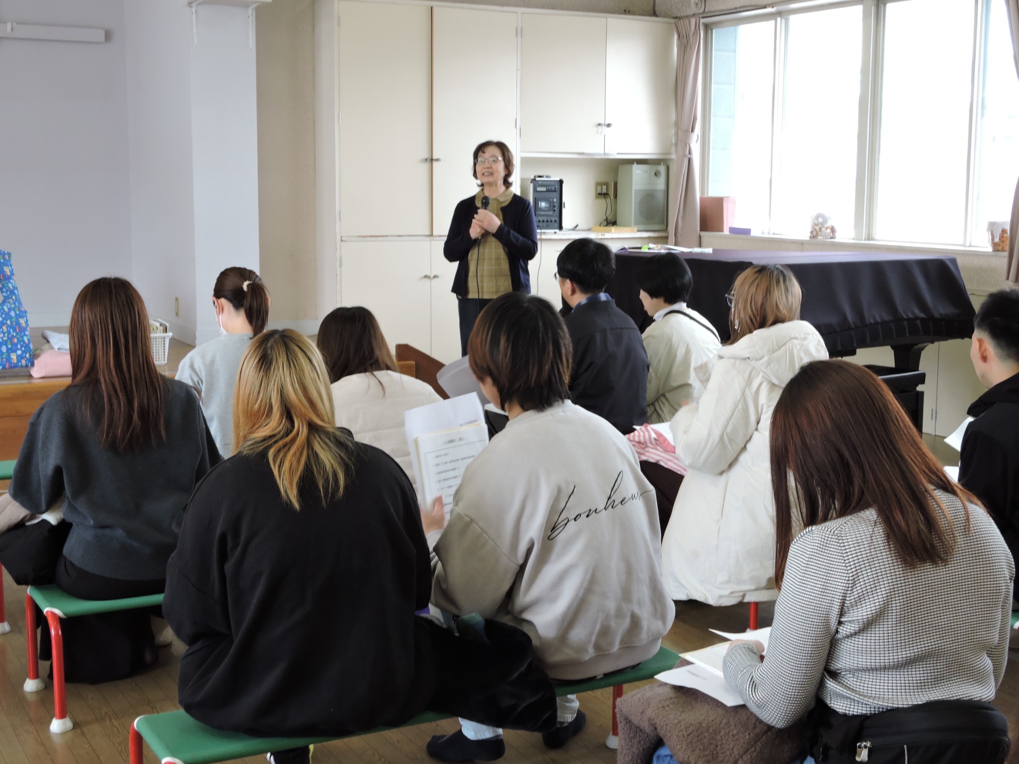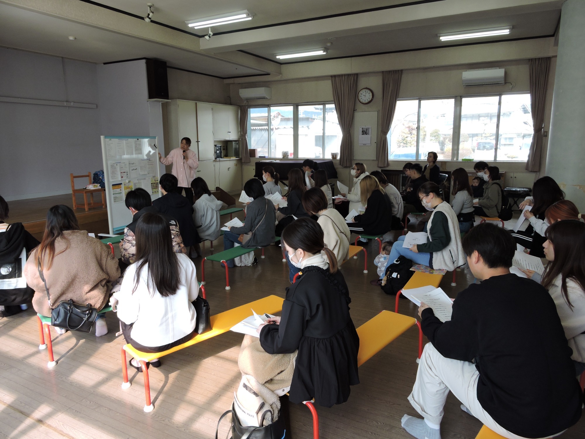 1歳児以上のお子さんは別室で保育をおこない、その間に保護者の方にゆっくりホールで説明をお聞きいただきました🖊