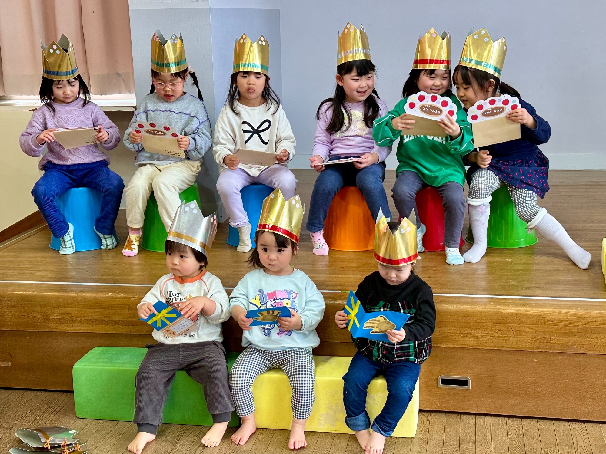 2・3月生まれのお誕生会をおこないました。これでみーんな1つ大きくなりました✨